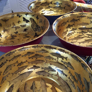 They are decorated with gilt then decoupage